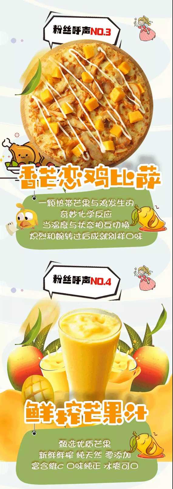 1.购9寸芒果系列比萨(全是芒果比萨、香芒恋鸡比萨、榴莲很芒比萨),赠送价值12元的美式翘翘薯一份。